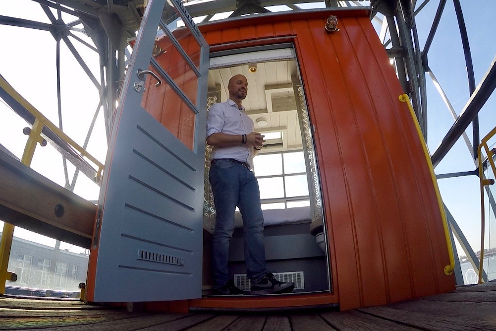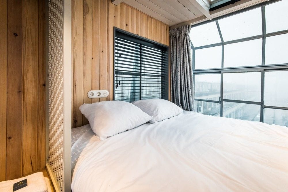 Nieużywany stary dźwig portowy stojący przy rzece IJ w Amsterdamie został odremontowany, a następnie przekształcony w niezwykły apartament hotelowy. Na pewnej wysokości umieszczono jeden na drugim trzy standardowe kontenery morskie mocując je do ramy dźwigu. Kontenery zostały oczywiście odpowiednio przerobione i wyposażone w całe niezbędne wyposażenie. Na dole z niezwykłym smakiem urządzono salon, kuchnię i jadalnię, na drugim piętrze znalazły się sypialnia z łazienką, a na samej górze jeszcze jedna sypialnia, w której całą jedną ścianę kontenera zastąpiono przeszkloną witryną pozwalającą cieszyć się lokatorom panoramicznym widokiem na rzekę i otaczające tereny. The Yays Crane Apartment można wynająć jak każdy inny apartament hotelowy korzystając z popularnych portali internetowych.