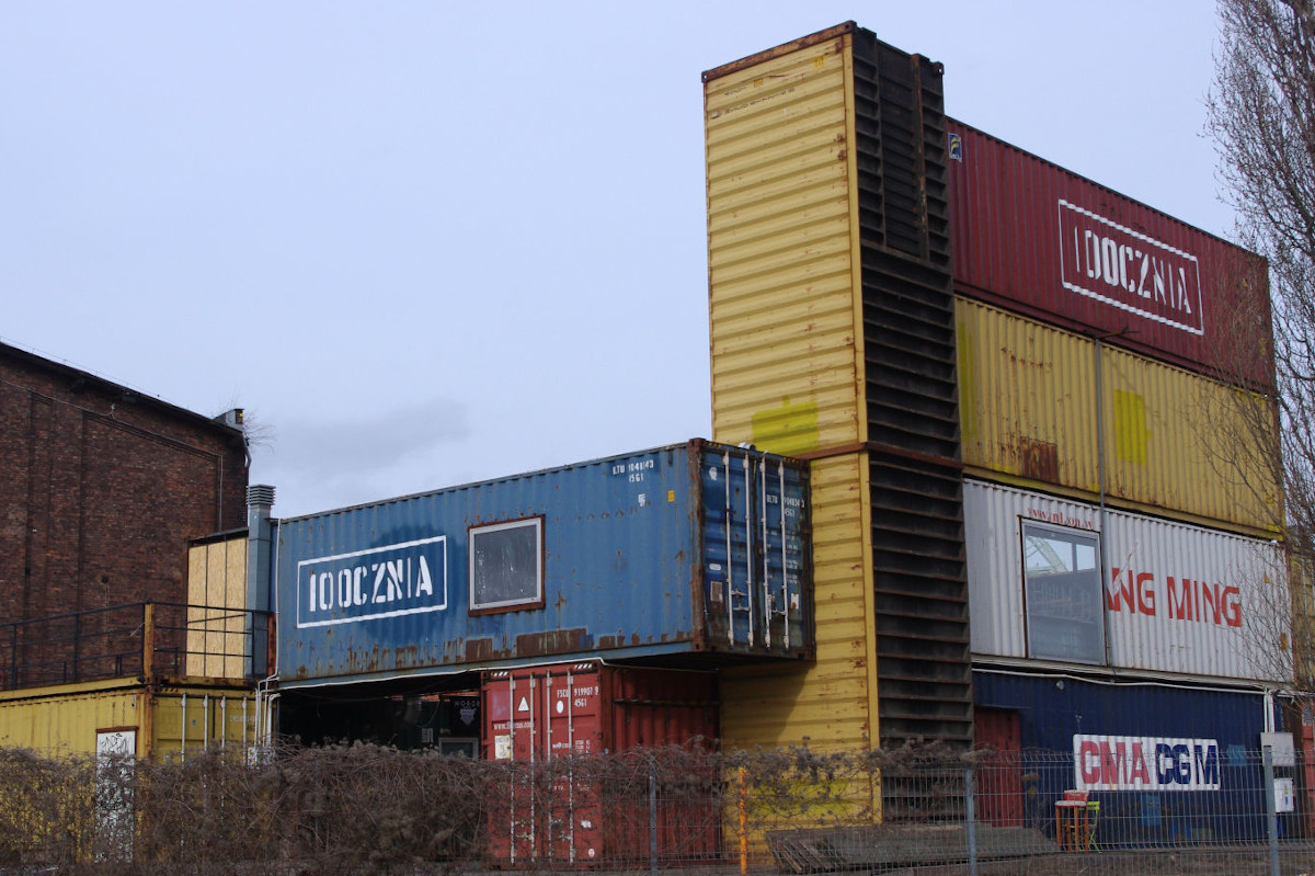 Również w Polsce powstają ciekawe projekty z wykorzystaniem używanych kontenerów morskich. Przykładem może być znajdujące się w Gdańsku miasteczko kontenerowe 100cznia która została zbudowana w w miejscu wyburzonego budynku Modelarni Stoczni Gdańskiej. Kolorowe, trochę zardzewiałe kontenery morskie, które wycofano już z eksploatacji, doskonale wpisały się w industrialny krajobraz terenów postoczniowych.